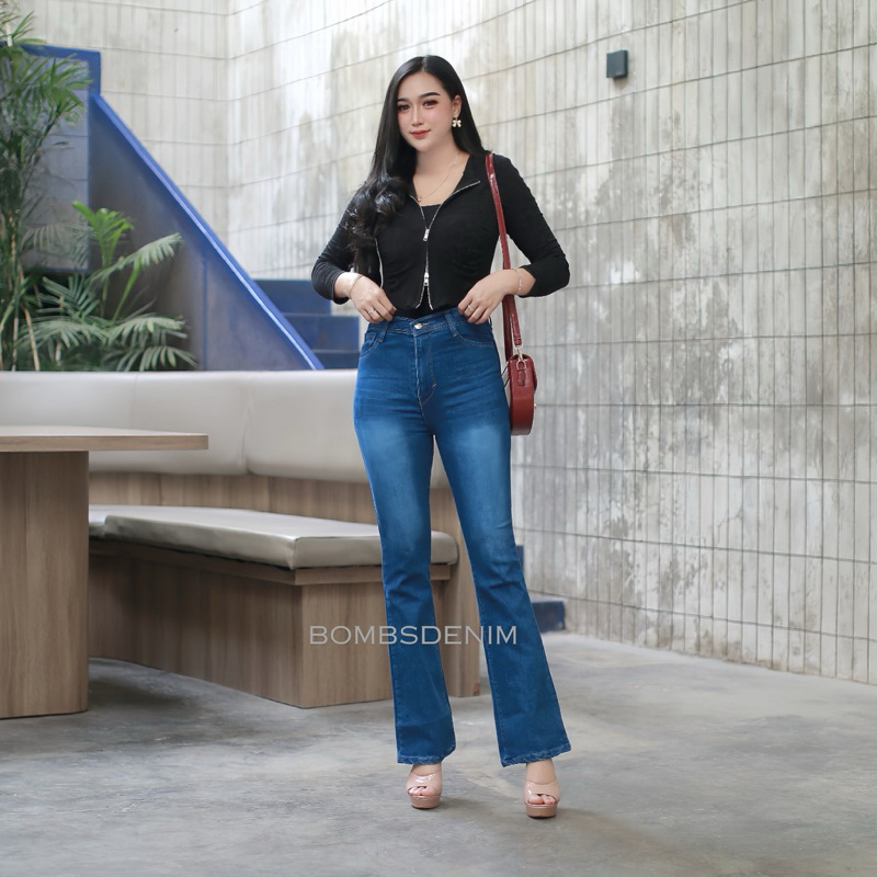 (Gratis Ongkir) Highwaist Cutbray Jeans Wanita - Celana Panjang Denim Cutbray