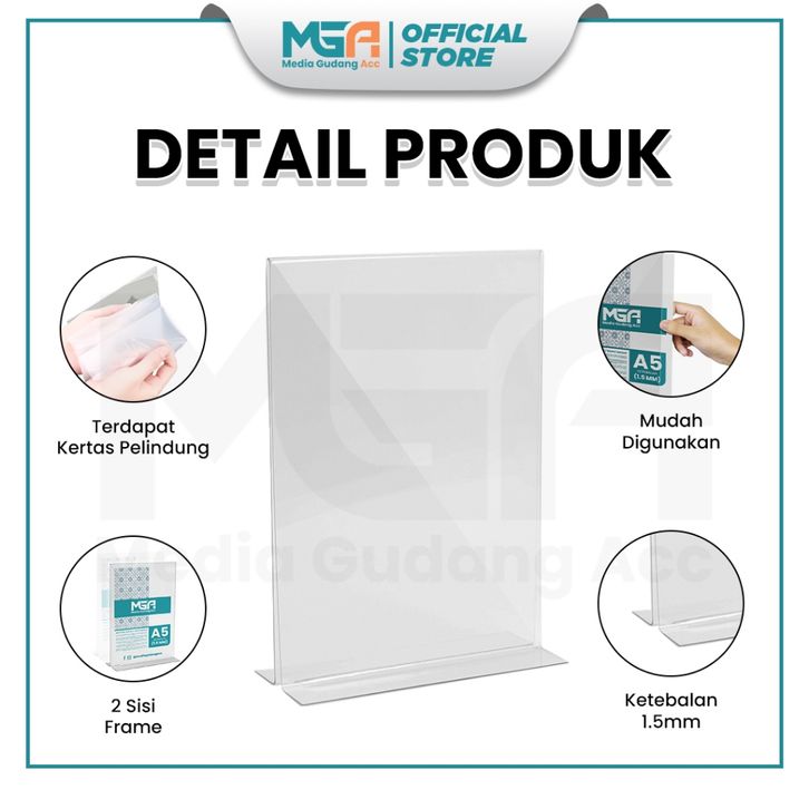 Tempat Brosur A5 Potrait Sisi Akrilik 1.5Mm Tent Holder Card Stand Display