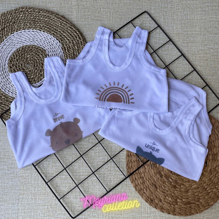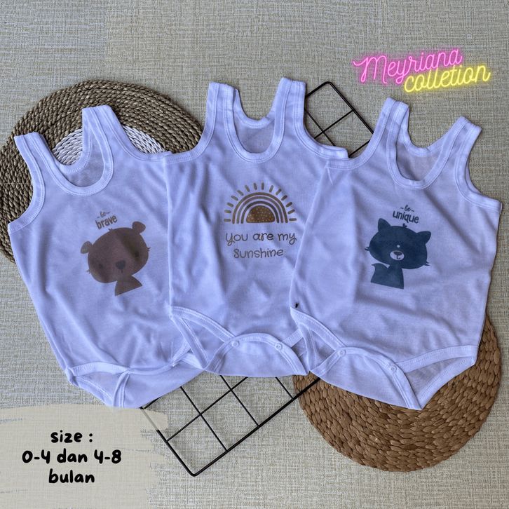 PROMO 3 PCS Singlet Jumper Bayi / Kaos Dalam Bayi Anak Usia 0-4 dan 4-8 Bulan / Kaos Sangsang Bayi Meyriana Collection