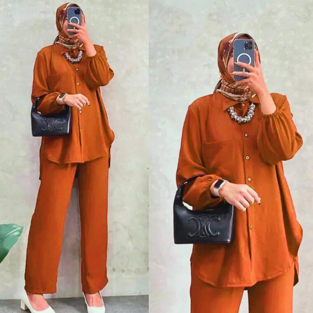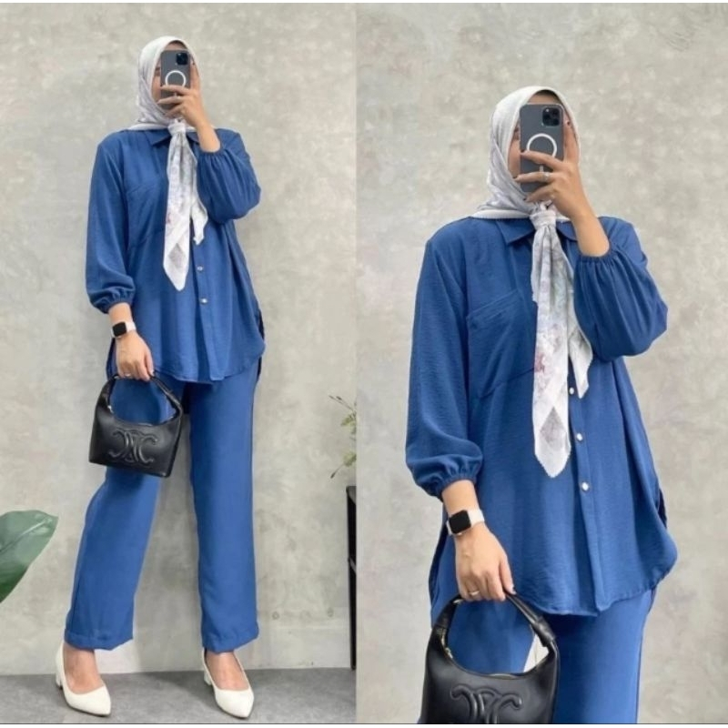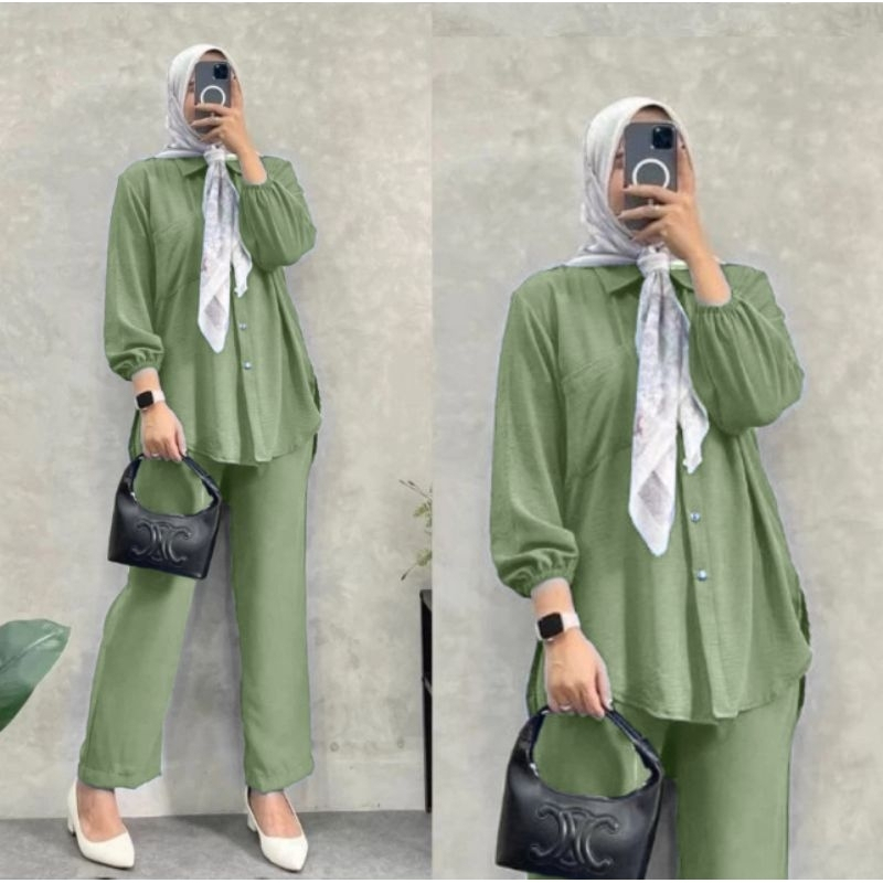 Setelan Amanda Busui Cringkle Airflow | One Set Kemeja Amanda Crinkle | Set Krinkel Wanita Kekinian Busui