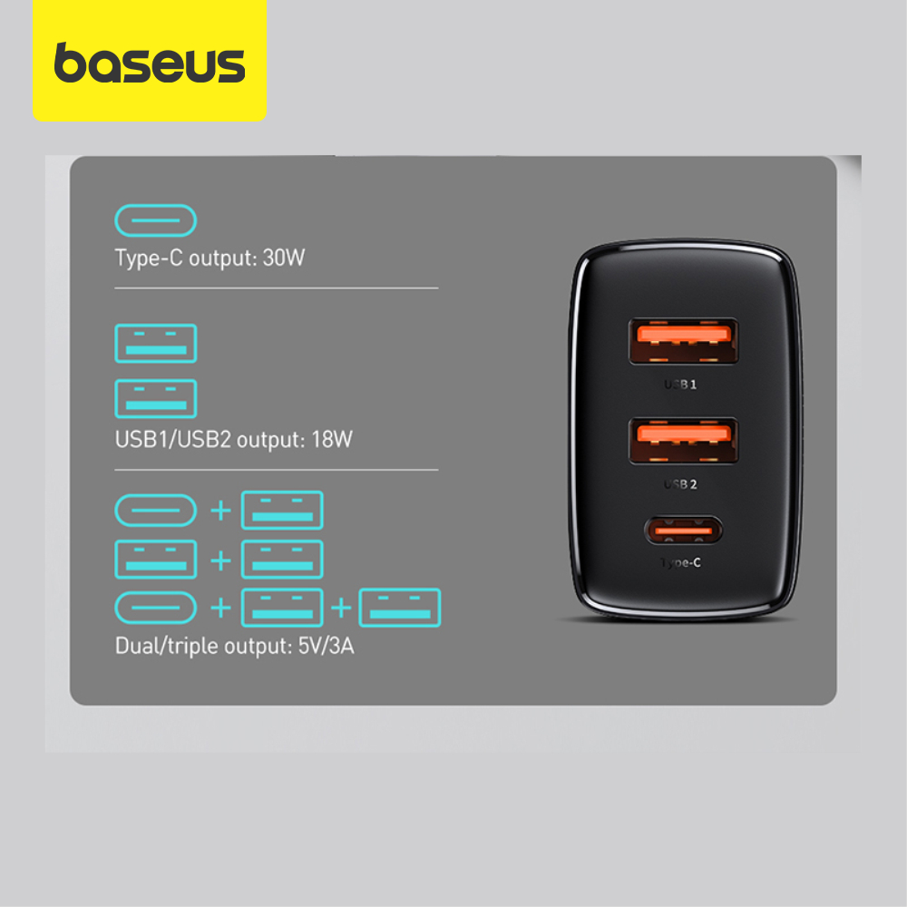Kepala Charger Baseus Quick Charging Type-C Dual USB 30W PD Fast Charge