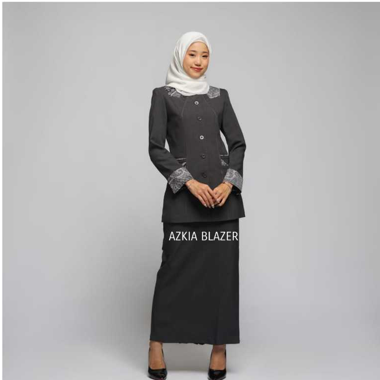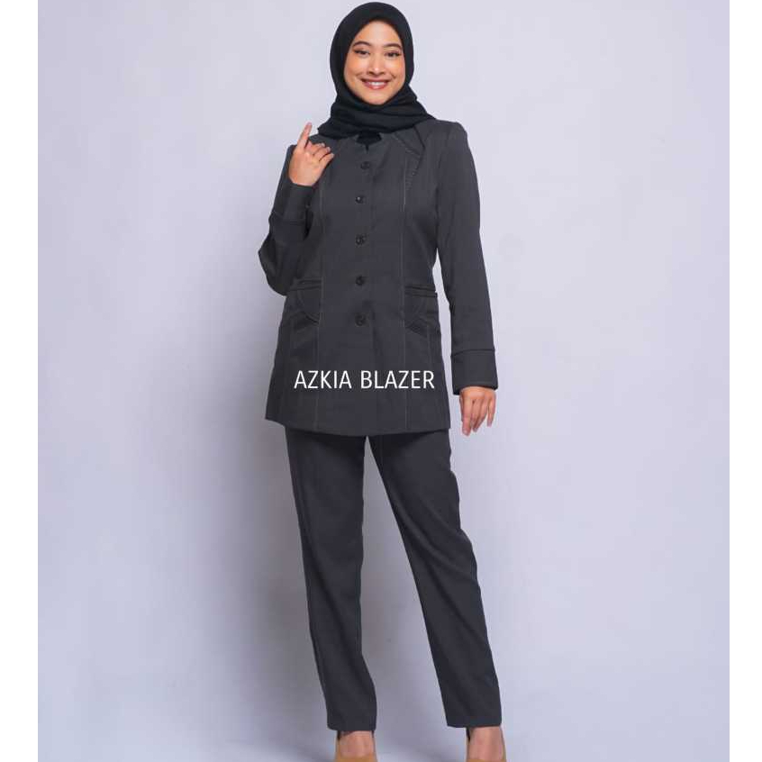 BAJU KERJA WANITA BLAZER WANITA TERBARU POLYESTER PREMIUM STRETCH IMPORT ABU TUA AZKIA BLAZER