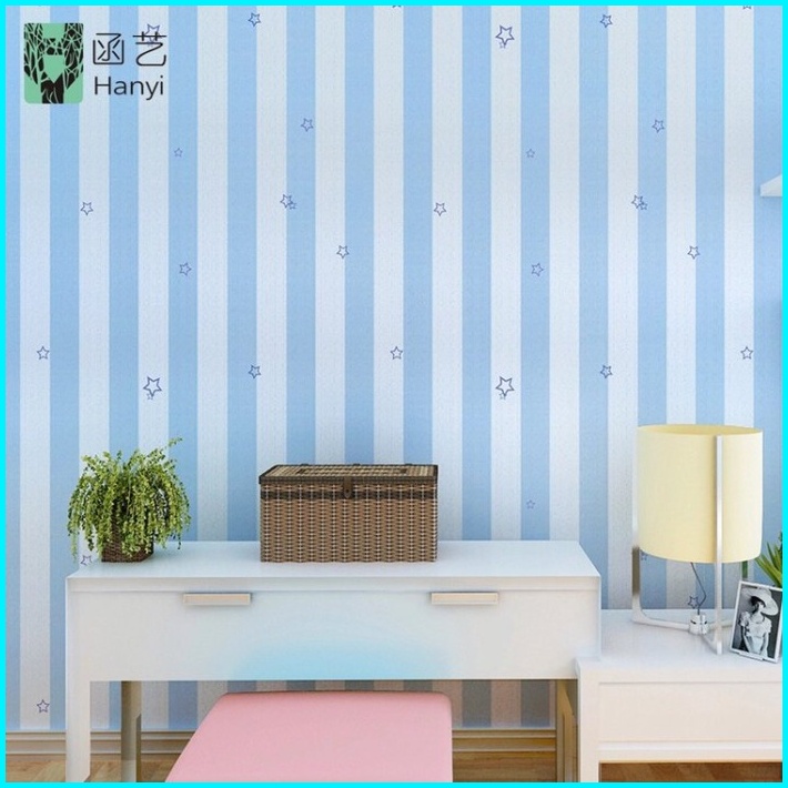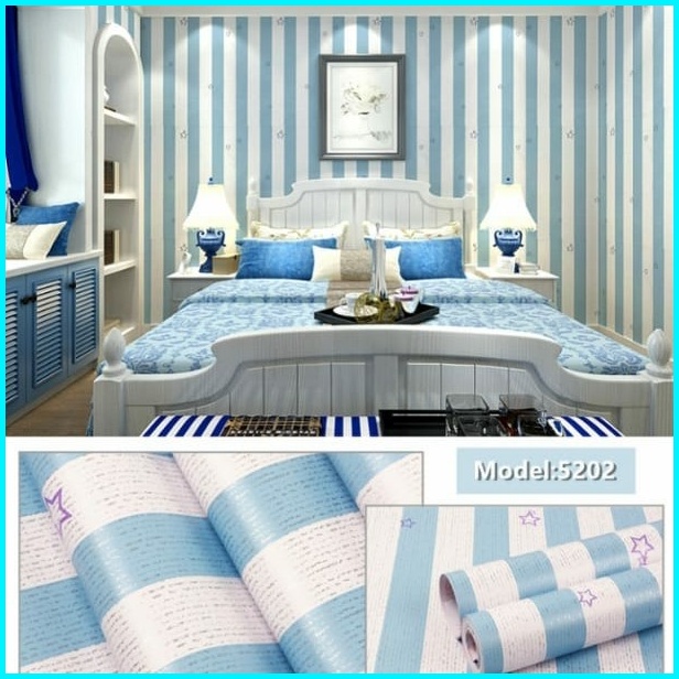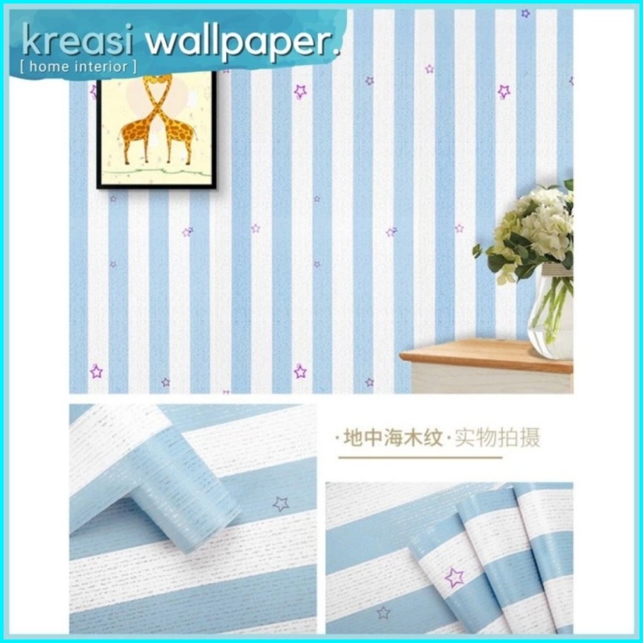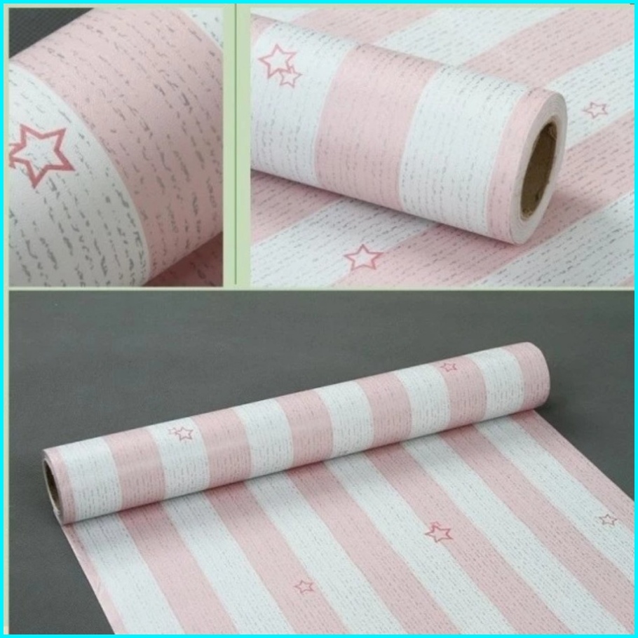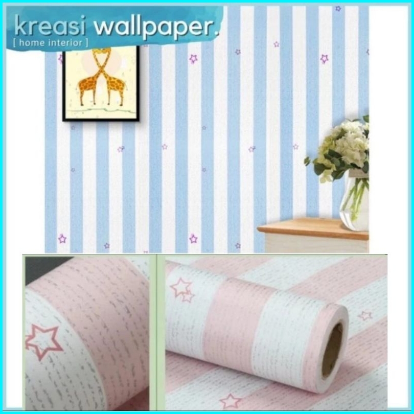 Wallpaper Dinding Sticker 3d Salur Biru Pink Bintang Anak Walpaper Stiker