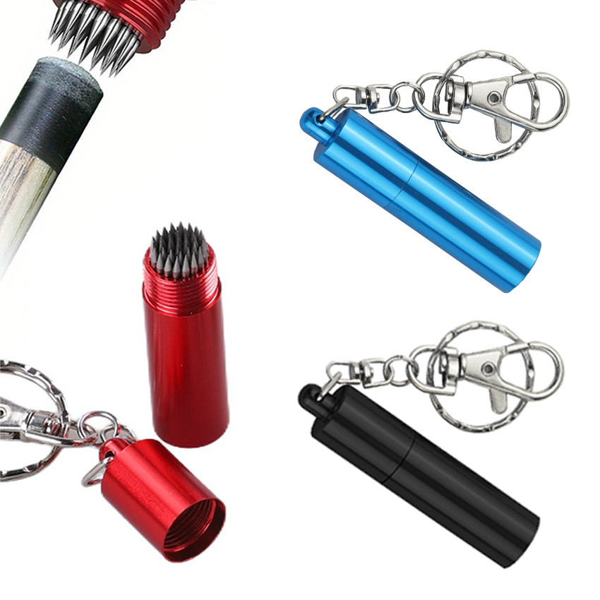 Alat Reparasi Stick Billiard 3in1 - Tip Pick Jarum + Amplas + Shaper Bowtie, Portable Warna Merah/Hitam/Biru