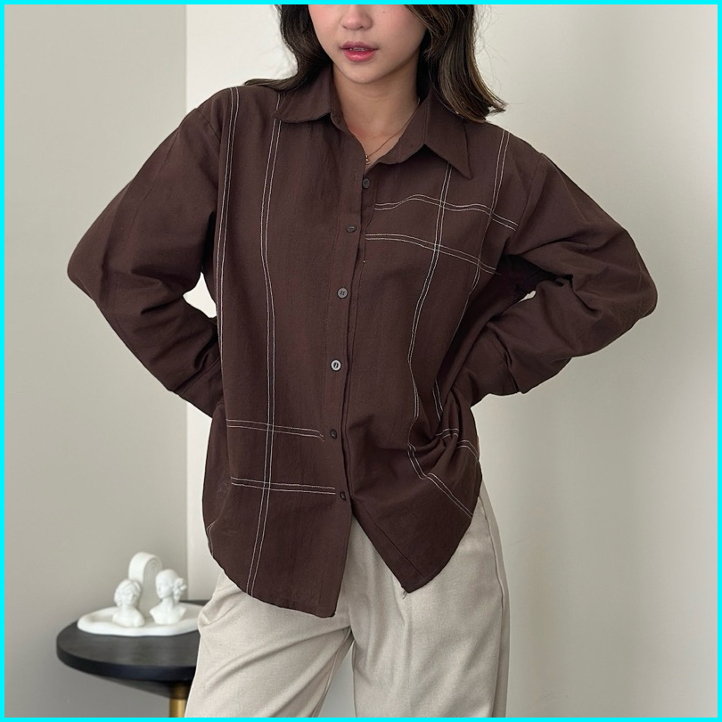 Asoka Twila Shirt 2289 - Contrast Stitch Oversize Blouse Long Sleeve - Atasan Wanita Kemeja