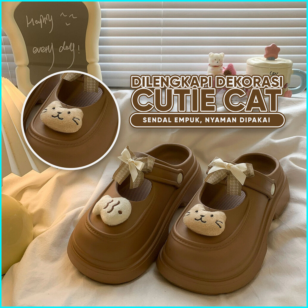 Lazy Bear Sepatu Sandal Mary Jane Cutie Cat H18 Sepatu Sendal Wanita Sandal Kekinian Sandal Lucu