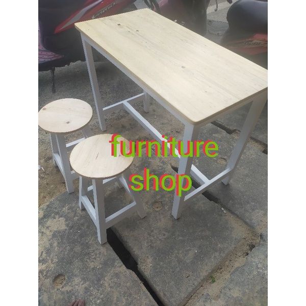 MEJA MAKAN MEJA CAFE SET 2 KURSI BAHAN KAYU PINUS JATI BELANDA UKURAN 100×50×75CM MEJA DAPUR MEJA SERBAGUNA