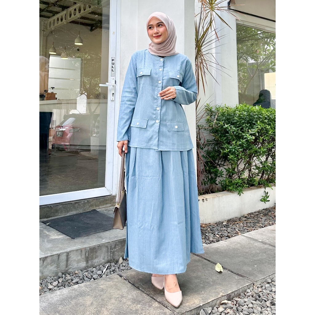 SETELAN ONE SET ROK WANITA DAN ATASAN DRESS SAFFA KOREAN STYLE KEKINIAN DAILY OUTFIT