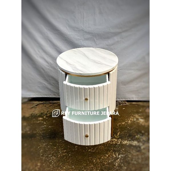 NAKAS MINIMALIS KAKI BESI TOP CAT MOTIF MARMER, MEJA SAMPING MINIMALIS KAKI BESI
