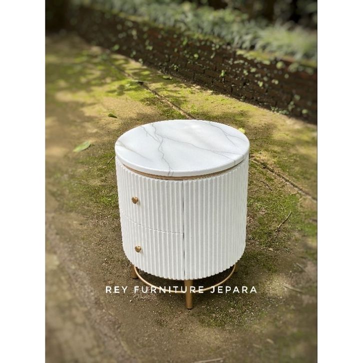 NAKAS MINIMALIS CAT DUCO MOTIF MARMER m0dERN KAKI BESI LACI SOFT CLOSE, MEJA SAMPING TERBARU
