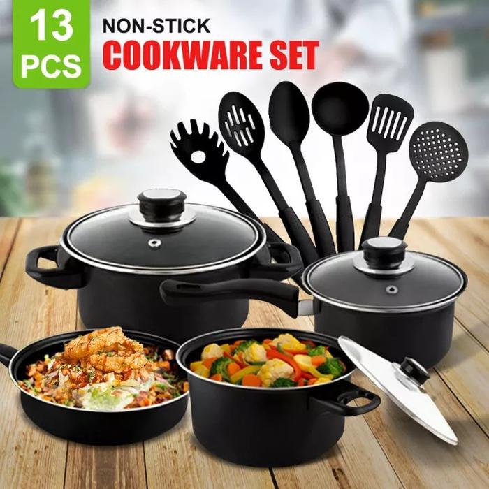Terlaris Panci 13Set Cookware Set 13Pcs Anti Lengket Stainless Steel Elegan