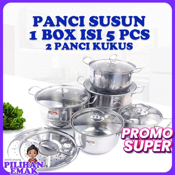 Murah Panci Kukus 1 Set Isi 5 Pcs High Pot soup Steamer Kukus Stainless Stell Keren