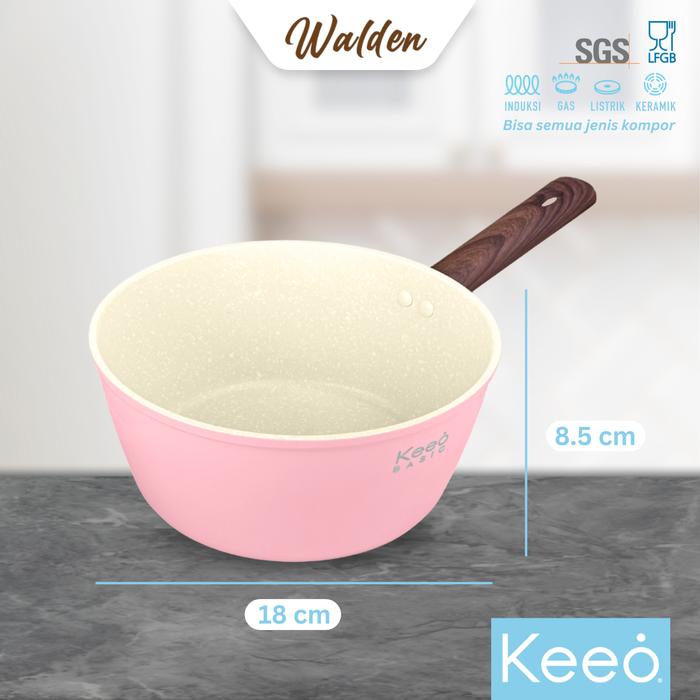 Murah Keeo Walden 18 cm Panci Sauce Pan Anti Lengket Marble Granit Alat Masak - Pink Elegan