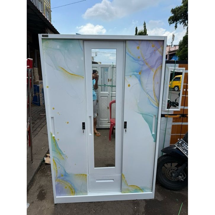 LEMARI PAKAIAN SLEDING Plat Besi 3 PINTU Ukuran 120x50x185