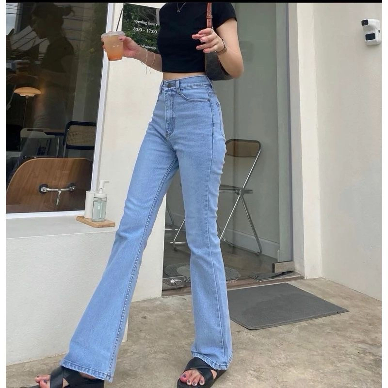 (Gratis Ongkir) Highwaist Cutbray Jeans Wanita - Celana Panjang Denim Cutbray