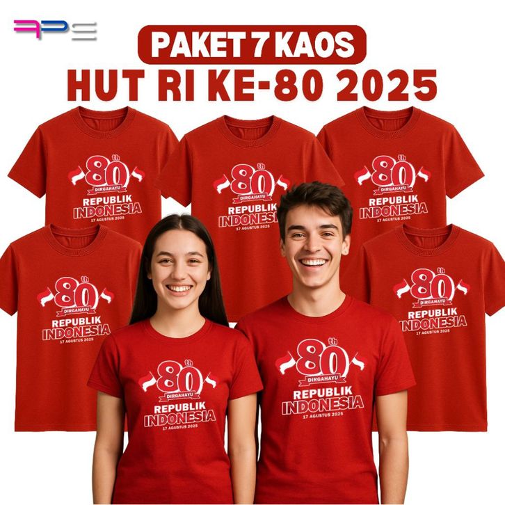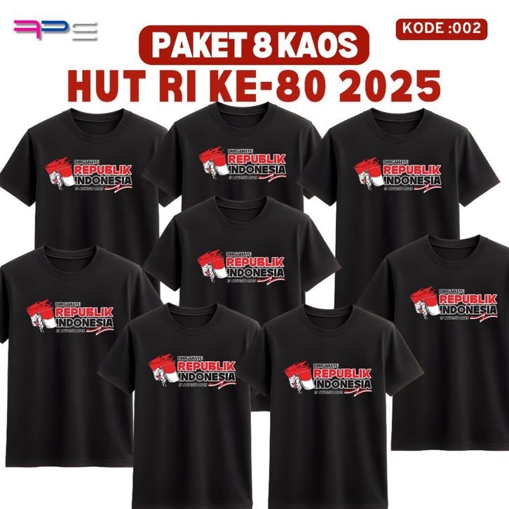 PAKET 8 KAOS HUT RI 2025 Kaos Merah Hitam Putih Kaos Agustusan Pria Wanita Seragam Karnaval Panitia RT RW Sablon DTF