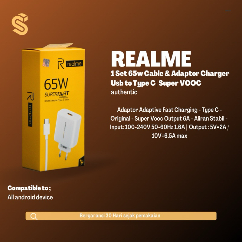 CHARGER REALME 65 WATT TYPE C | SUPERDART FAST CHARGING