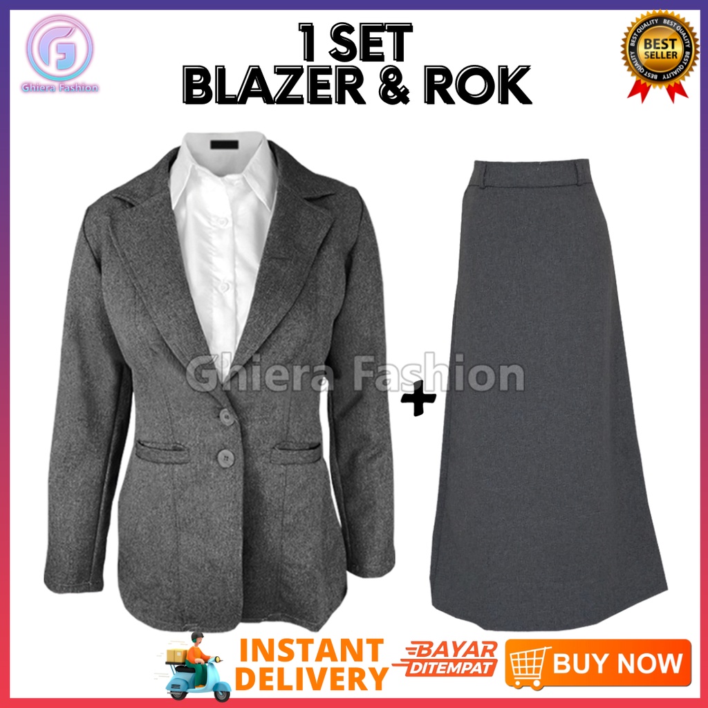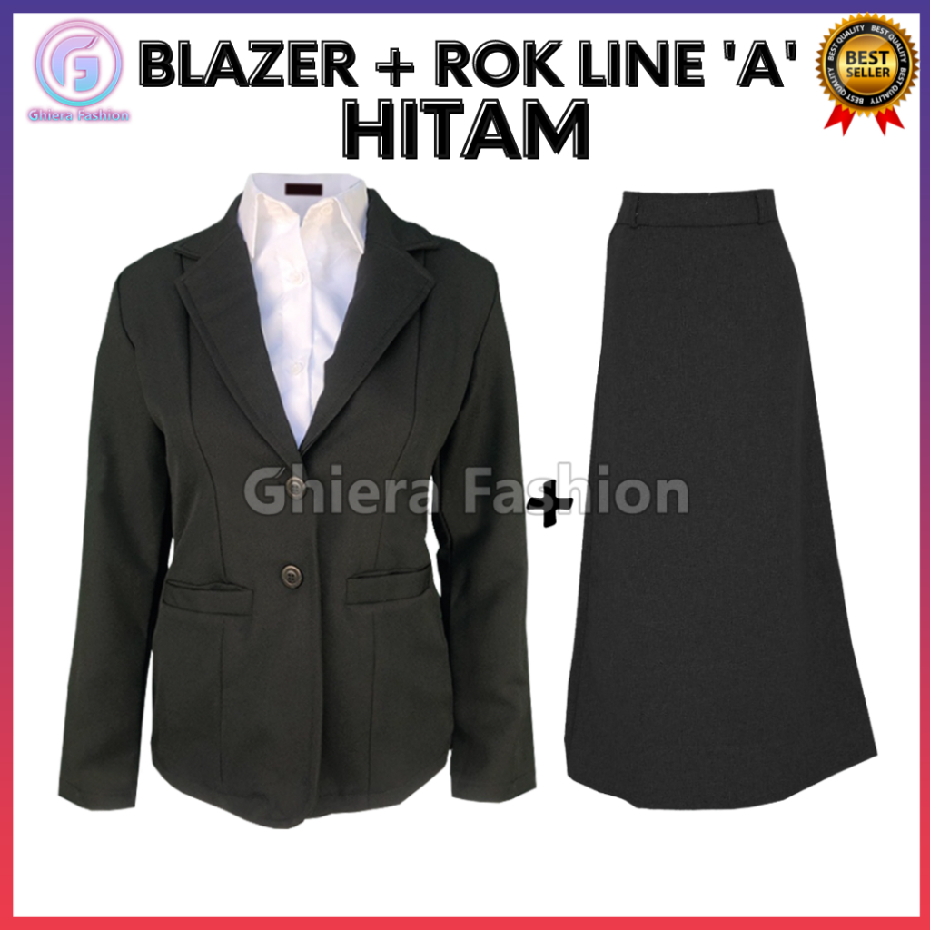 ONE SET BAJU KERJA WANITA BLAZER DAN ROK LINE A PAKAIAN KANTOR STELAN SETELAN PEREMPUAN POLOS CEWEK BAHAN WOL GABARDINE KOREAN STYLE