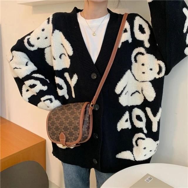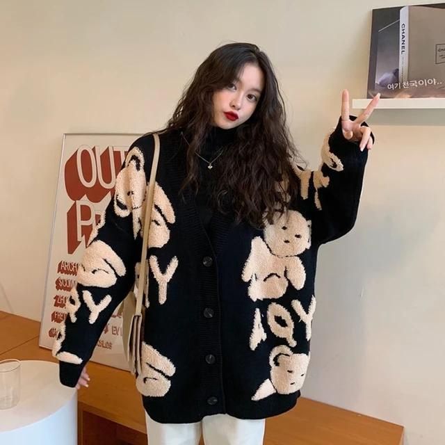Falen Fuzzy Cardigan Wanita Korean Style Oversize Aqy Bear Outer Kekinian Bahan Rajut Terlaris