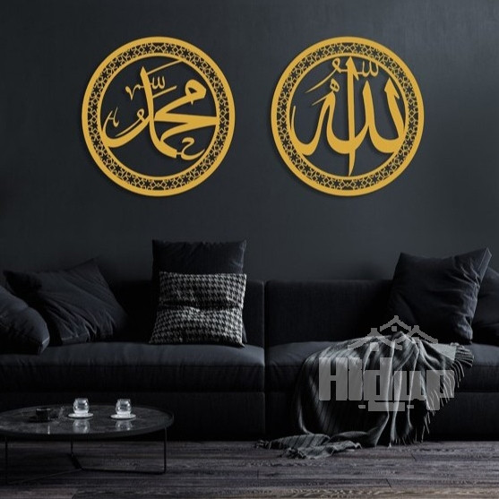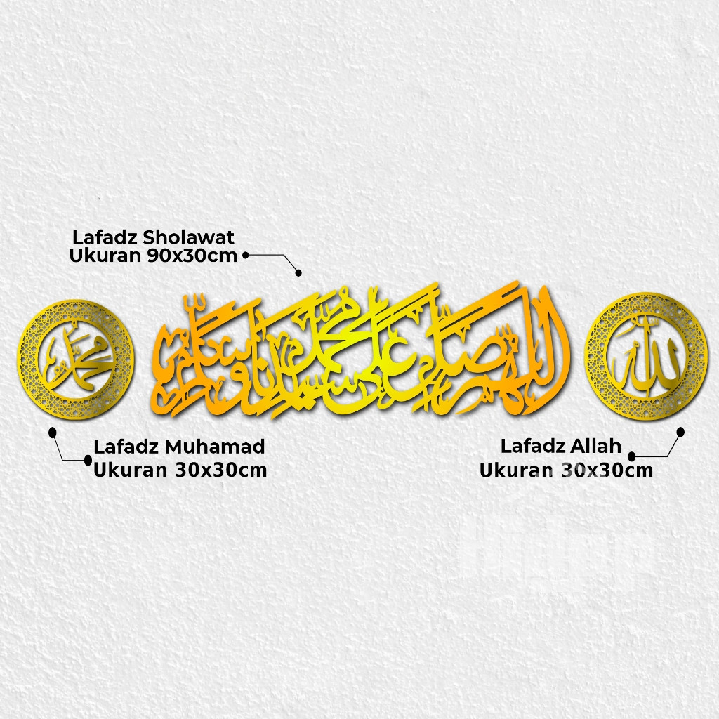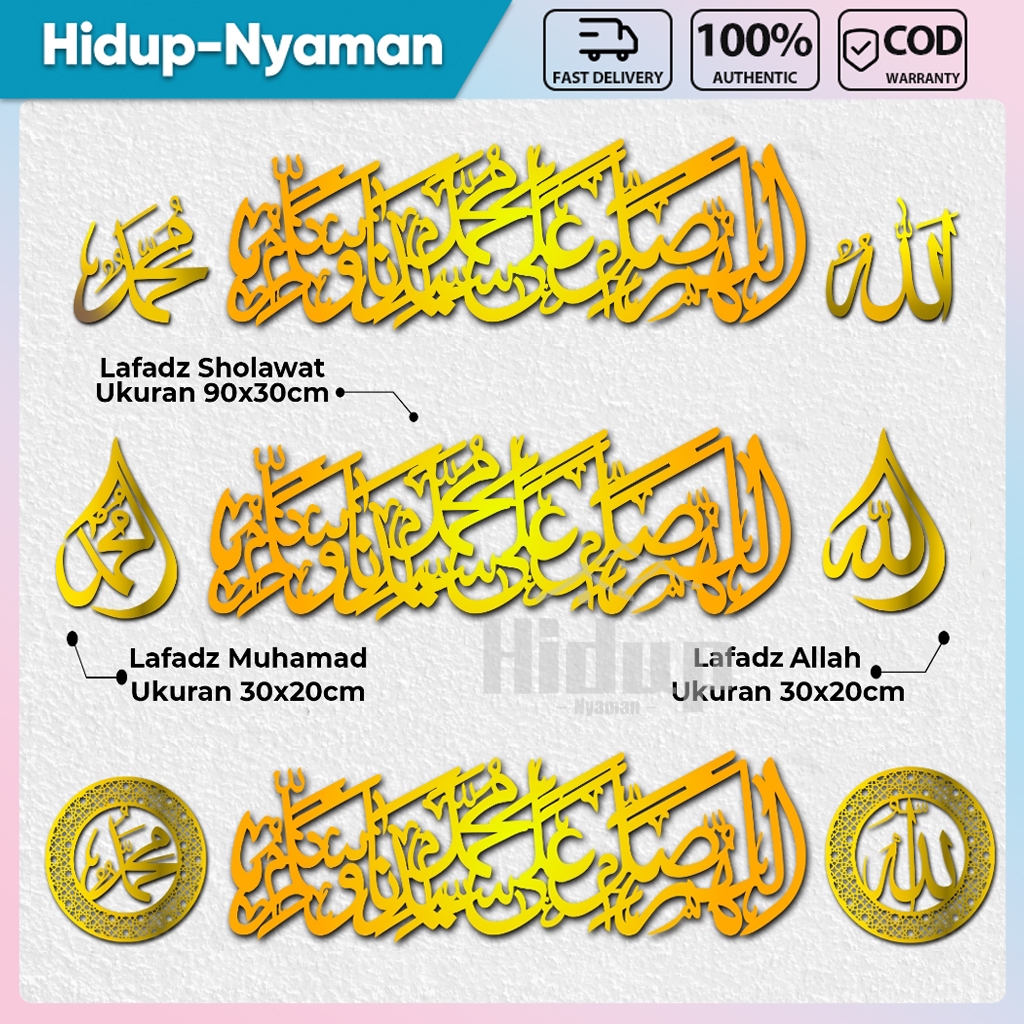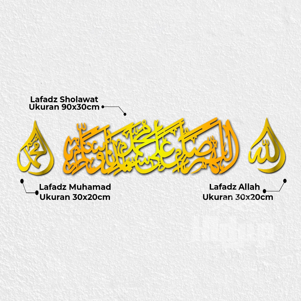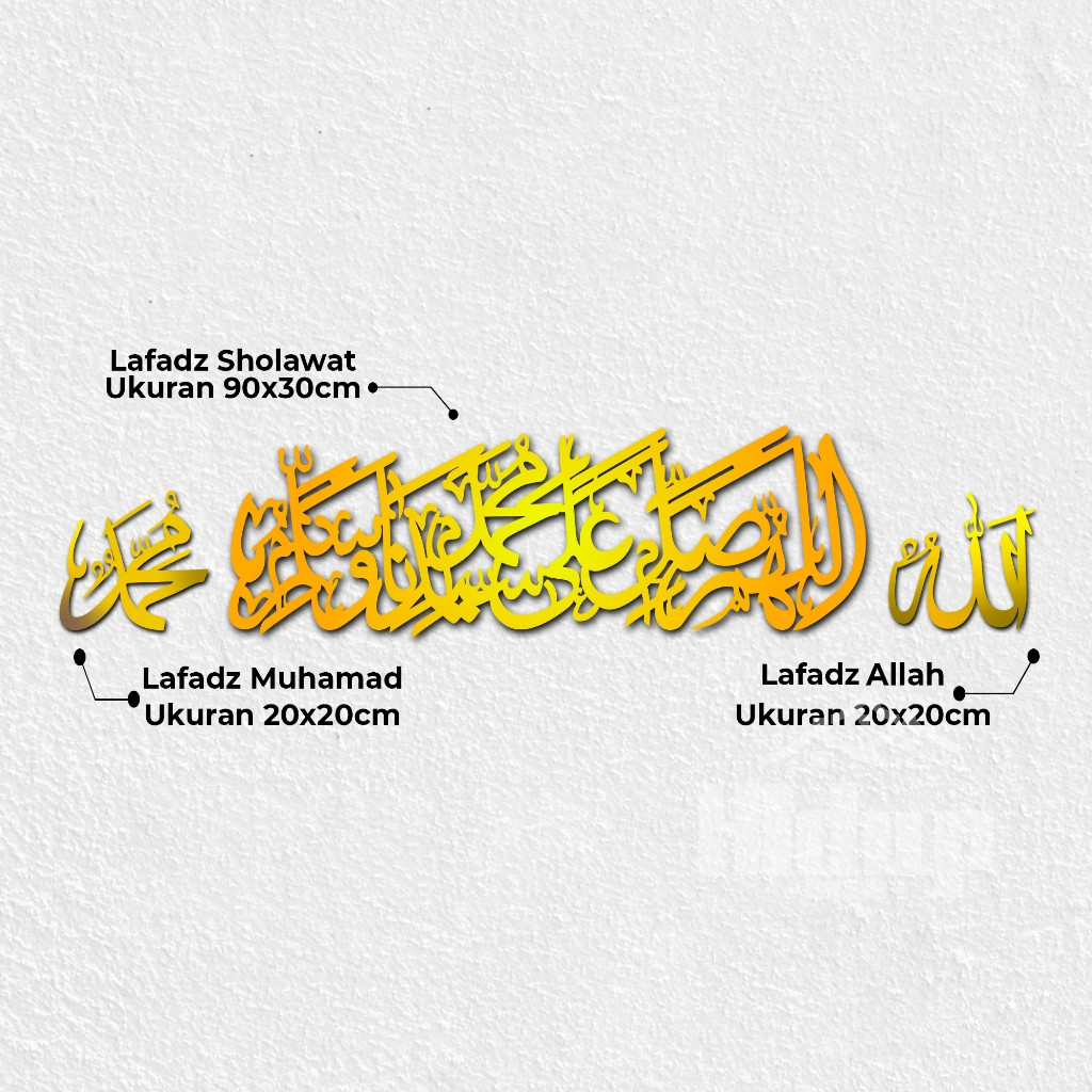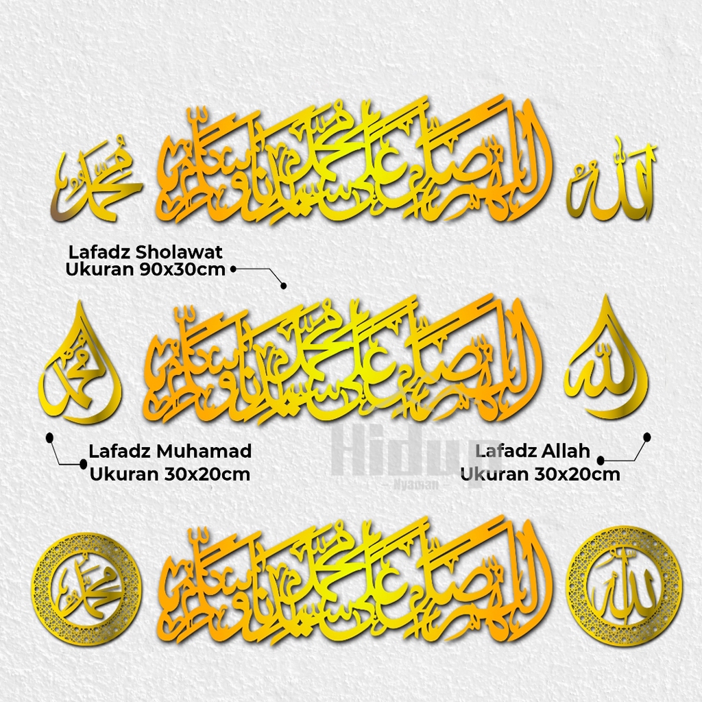 Kaligrafi Sholawat + Allah Muhammad Akrilik Mirror Dekorasi Pajangan Dinding Ruang Tamu/Hiasan Kamar/Hiasan