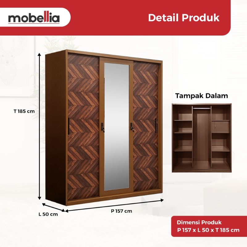 Lemari Besi Pakaian 3 Pintu Sliding Lemari Baju Besi Gratis Ongkir