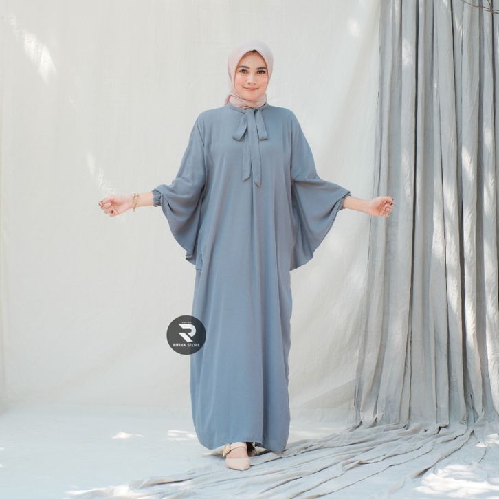 GROSIR Rifina Zalea Dress Lengan Batwing Rayon Simple Elegan Gamis Abaya Kaftan Kekinian ohihb