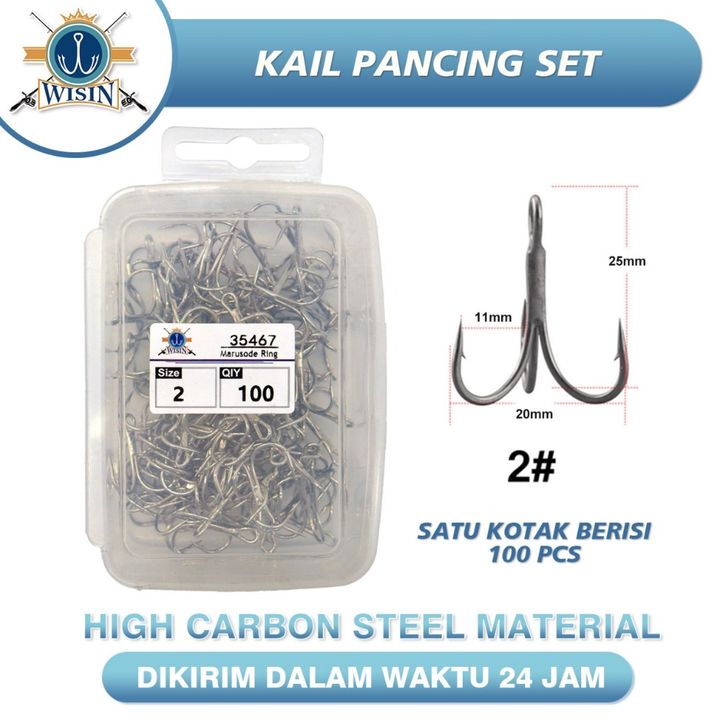 RK - WISIN Hook Kail Pancing Treble Zeus GT Warna Silver 100pcs/Kotak,50cs/Kotak