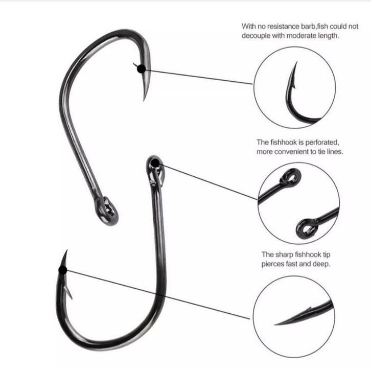 RK - 【】Set Kail Pancing 10 Ukuran 500PCS Buah Peralatan Memancing bajja Karbon Lingkaran Tunggal