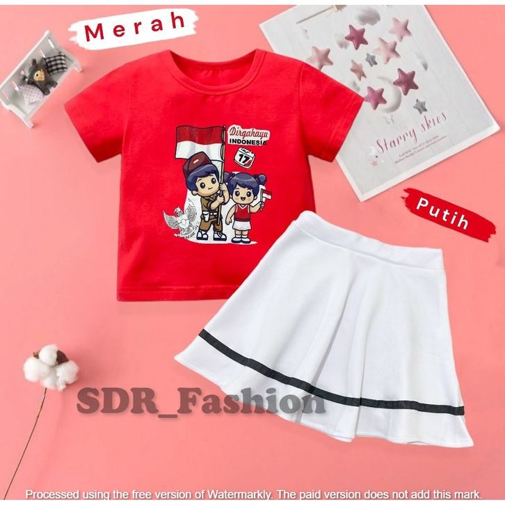 baju kaos anak 17 agustus Setelan rok 17 agustus anak perempuan baju hari kemerdekaan usia 1 sampai 10 tahun