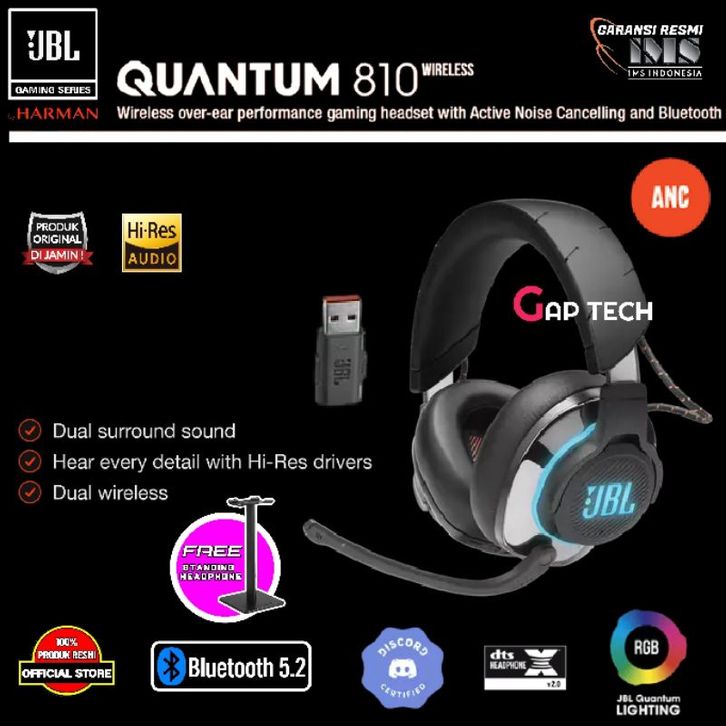 JBL QUANTUM 810 Wireless Over-Ear Performance Gaming Headset with Active