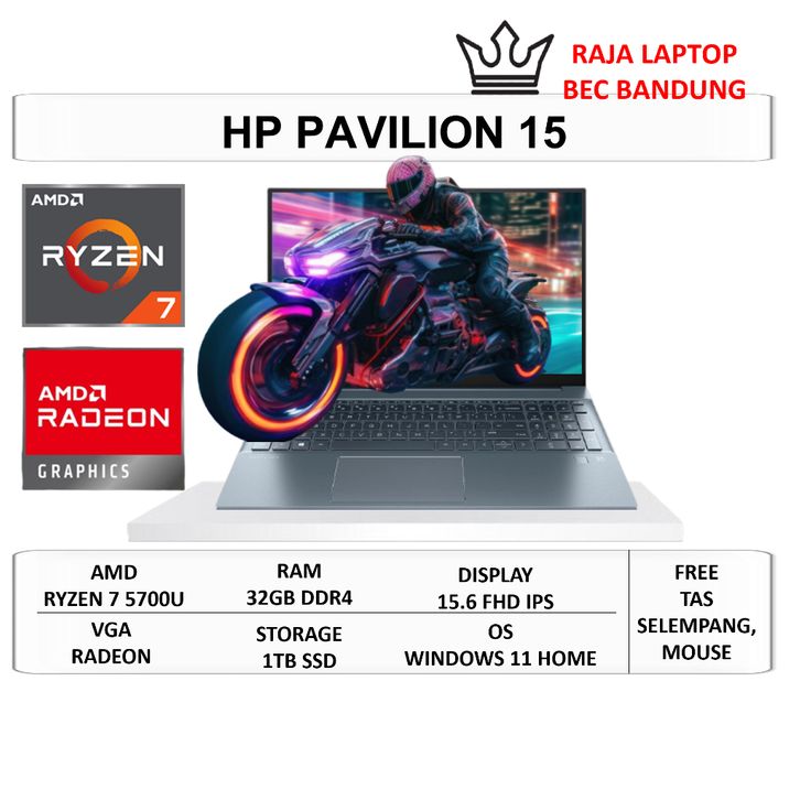 Laptop Editing HP Pavilion 15 Amd Ryzen 7 5700U 32GB 1TB 15.6 FHD IPS WINDOWS 11 HOME ORIGINAL