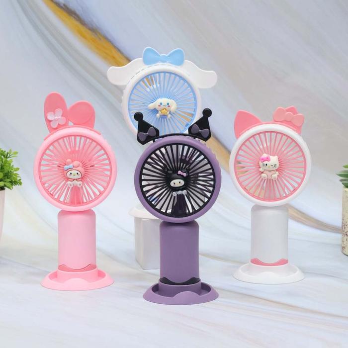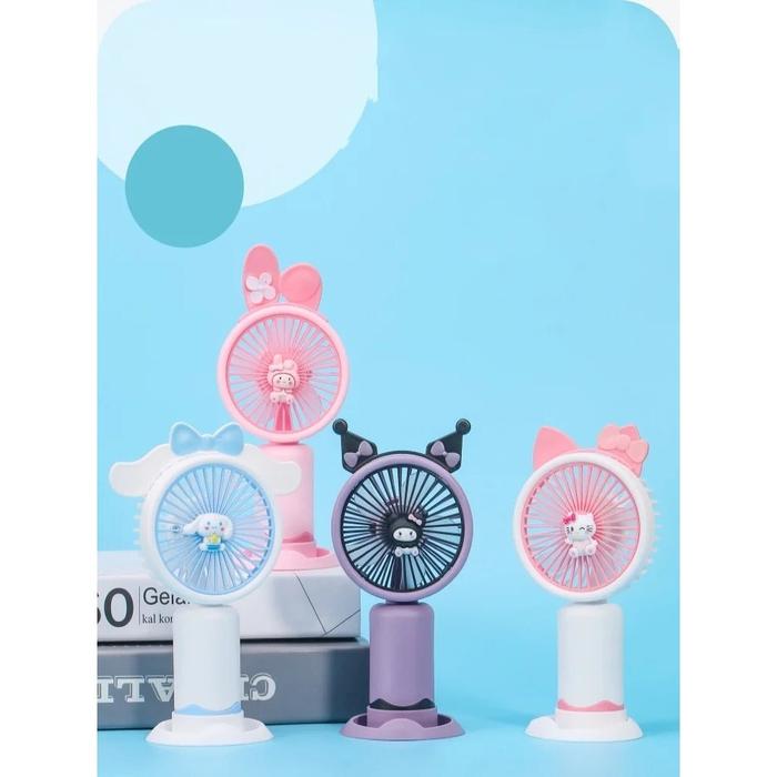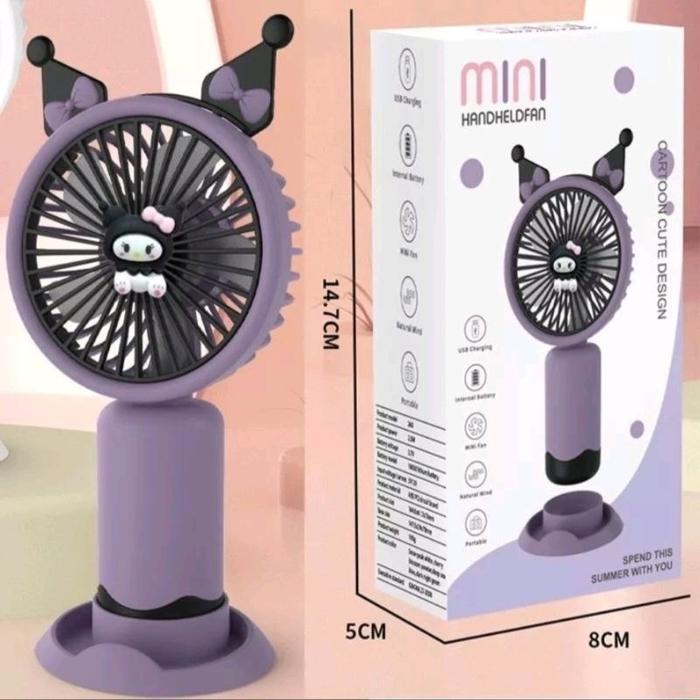 Promo KiPAS ANGIN MINI KARAKTER KARTUN KUROMI KODE 260 / KIPAS MINI PORTABLE MODEL CAS + HOLDER HP - Hellokitty Elegan