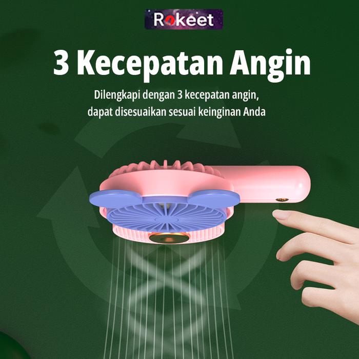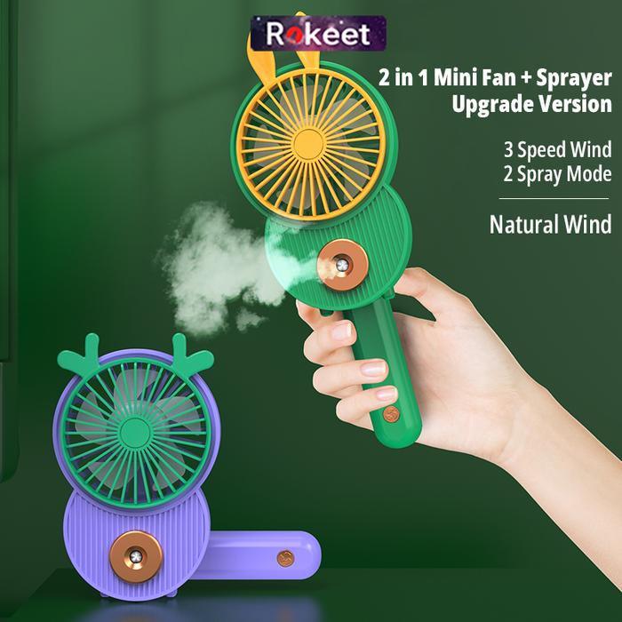 Promo Rokeet Kipas Angin Mini Portable Genggam 2 in1 Mini Fan Mist Sprayer USB - Putih Elegan