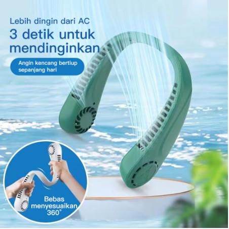 Murah KP015 Mini Fan Neck Elektrik / Kipas Angin Gantung Leher Portable USB - Putih Elegan