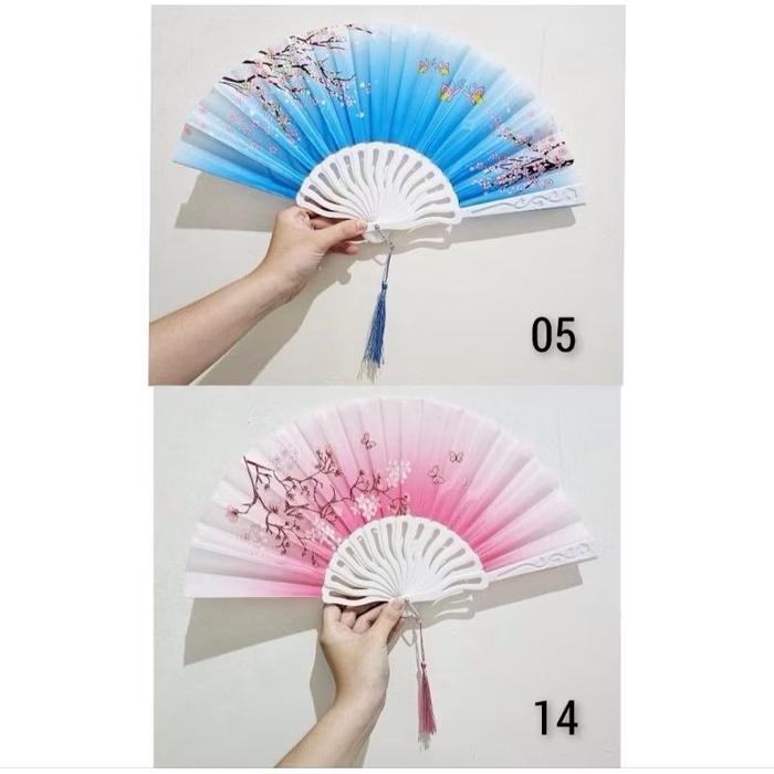 Terlaris Kipas Tangan Plastik Bunga Gaya Jepang Cina Kipas Lipat Kipas Tari Kipas Kungfu - Kipas No. 02 Elegan