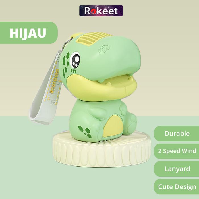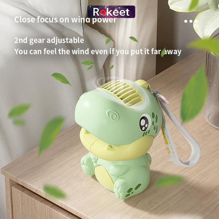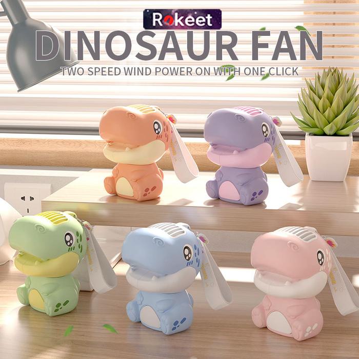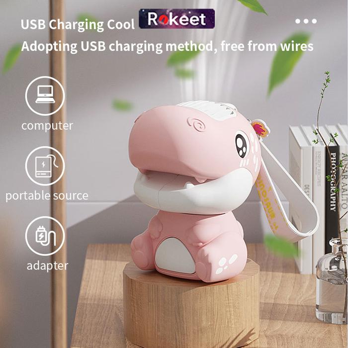 Terlaris Rokeet Kipas Angin Mini Portable Karakter Dinosaurus Lucu Rechargeable - Orange Elegan