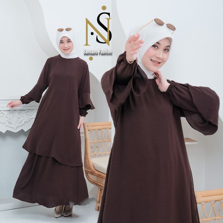 TERMURAH Aresha Long Tunik Set Rok Crinkle Baju Stelan Polos Simple Anggun Cantik idoks