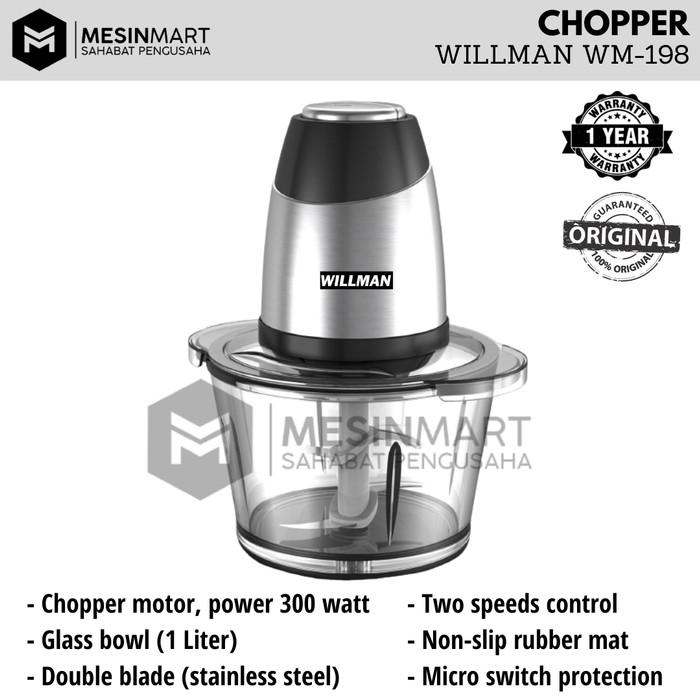 Murah Food Chopper Blender WILLMAN WM-198 Mesin Giling Daging Bumbu Rempah Dapur Pisau Dapat Dilepas - wm-198 Keren