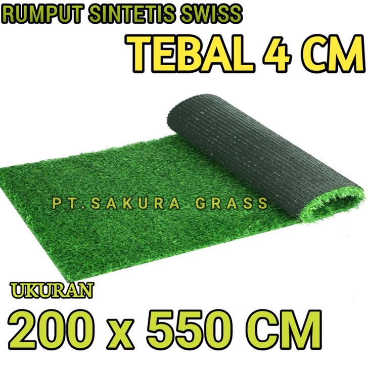 GROSIR RUMPUT SINTETIS TIPE SWISS TEBAL 4 CM UKURAN 200 X 550 CM TERLARIS BUAT TAMAN