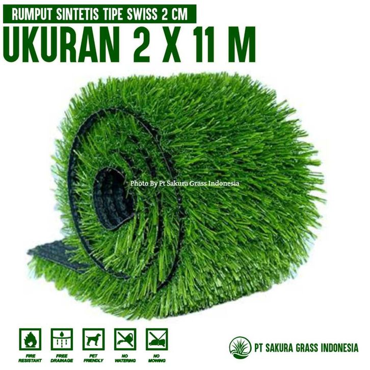 Rumput Sintetis Ukuran 2x11 meter Tipe Swiss untuk Dekorasi / Taman