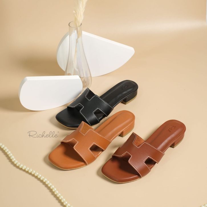 Richelle NEW LOU 3 Sendal Heels Wanita Hak Kotak 3cm