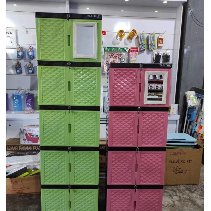 NEW Arrival Lemari Plastik Kaca / Lemari Baju Kaca / Lemari Rak Serbaguna Kaca acemnl
