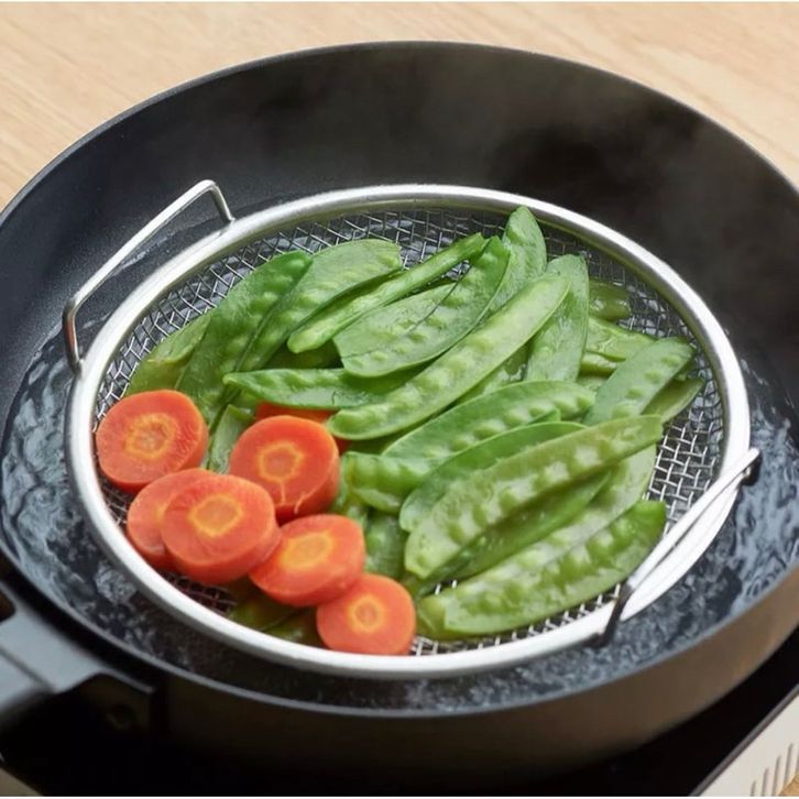 GROSIR 1set piring tiris minyak saringan minyak bulat stainless / alat peniris minyak sayur serbaguna gagang