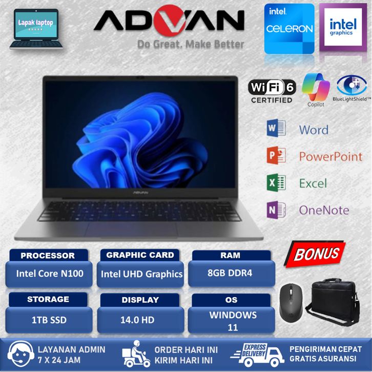 Laptop Advan T Book 14 1405 L24E NSNS1 Intel Core N100 Ram 8GB 1TB SSD Windows 119rey