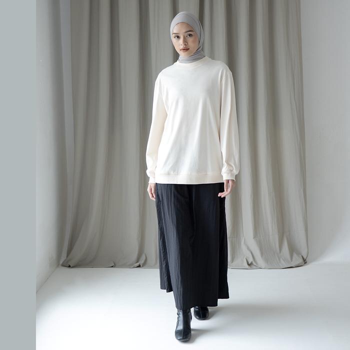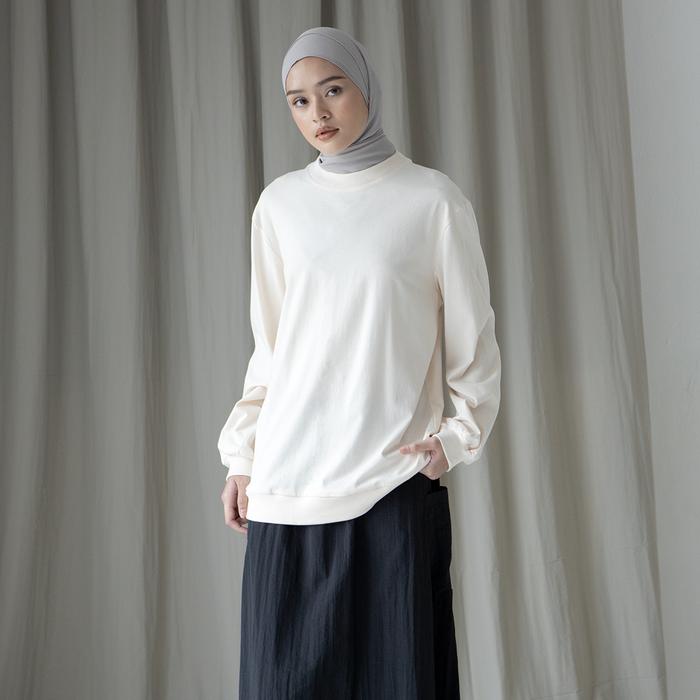 Promo Pravara by Aska Label - Sweater wanita lengan panjang bahan kaos atasan kaos wanita - Offwhite S Keren