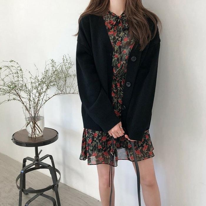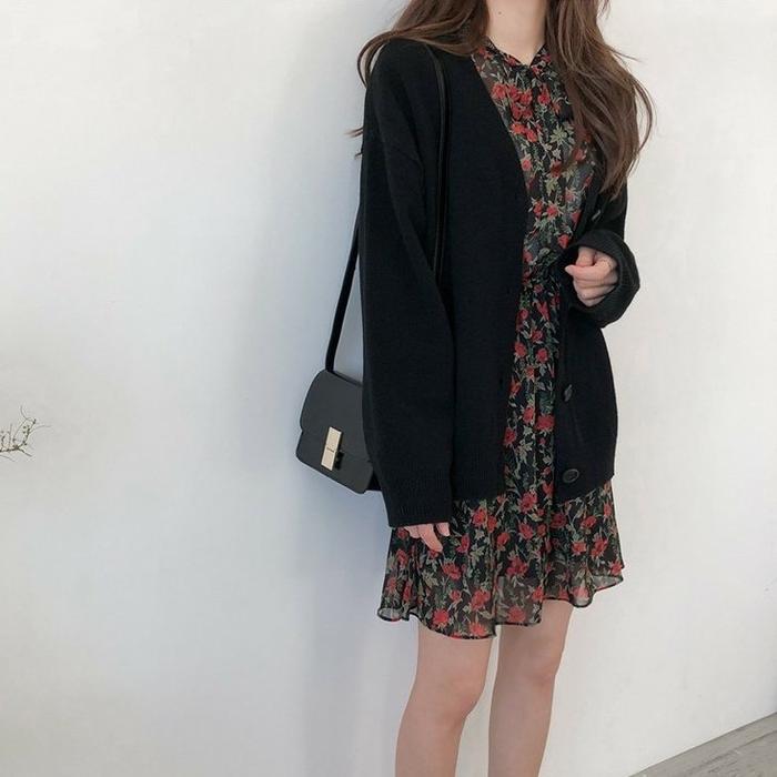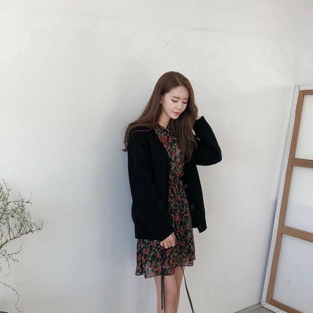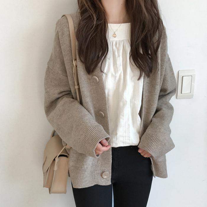 Promo Cardigan Rajut Longgar Warna Solid Baru Untuk Wanita 2 Warna Knitwear Top Panjang Sweater Atasan - Aprikot Elegan