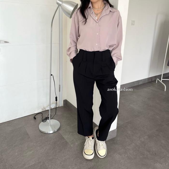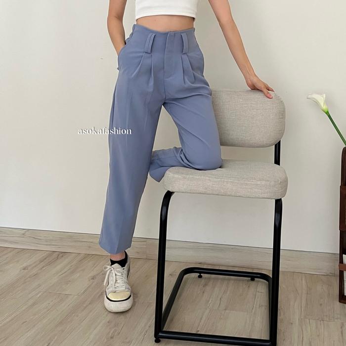 Murah Asoka - Gretta Pants 779 - Ankle Pants - Celana Kantor Wanita - Petite Pants Nyaman Panjang - Black Elegan