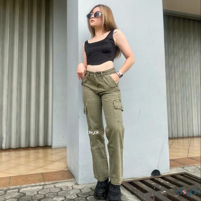 Terlaris DISYAK - Boyfriend Cargo Celana Panjang Jeans Army Brown 714-814 - Army Brown 27 Elegan