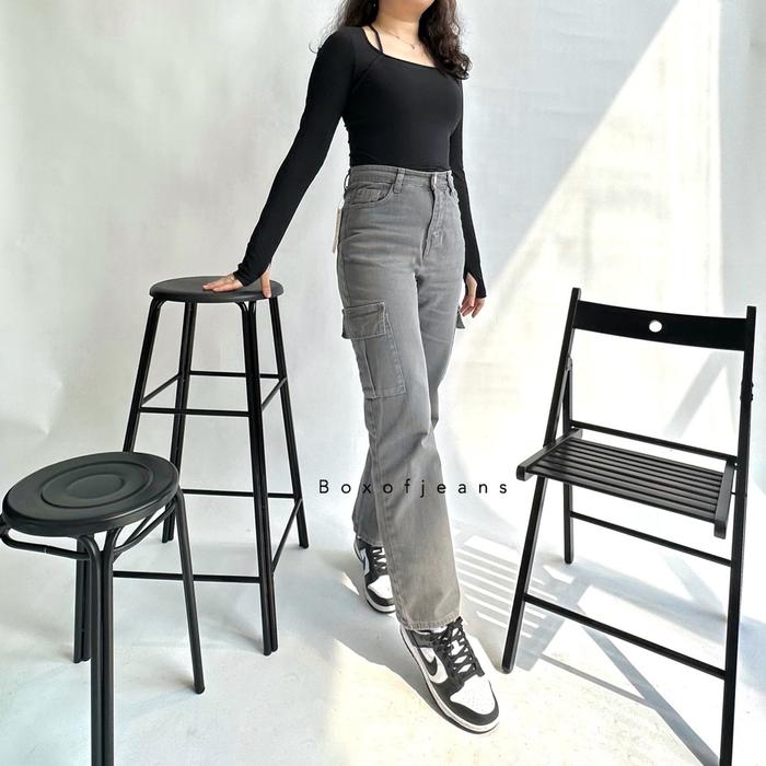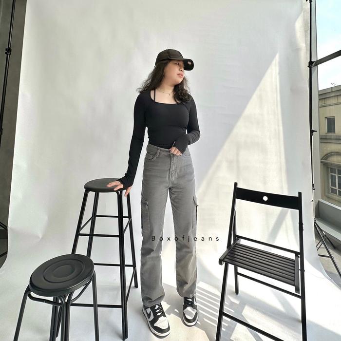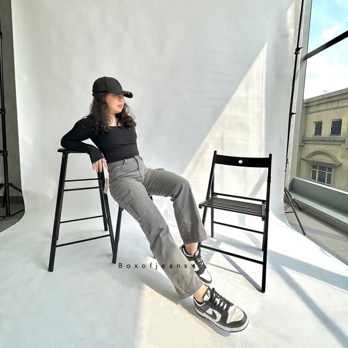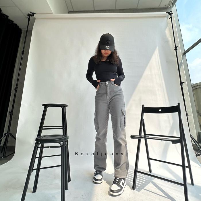 Murah Boxofjeans - CARGO HW Loose Jeans - LIGHT GREY // Celana Panjang Wanita High Waist - 27 Elegan