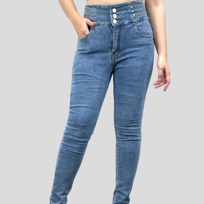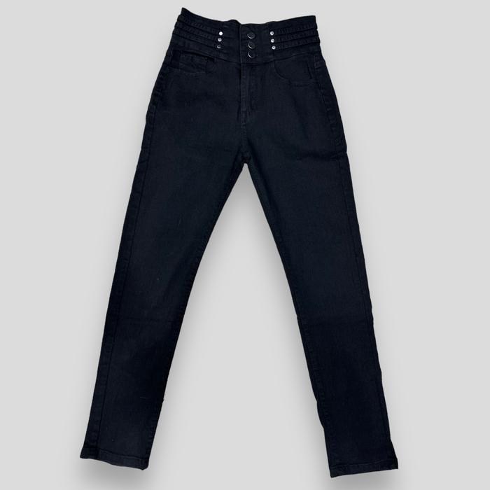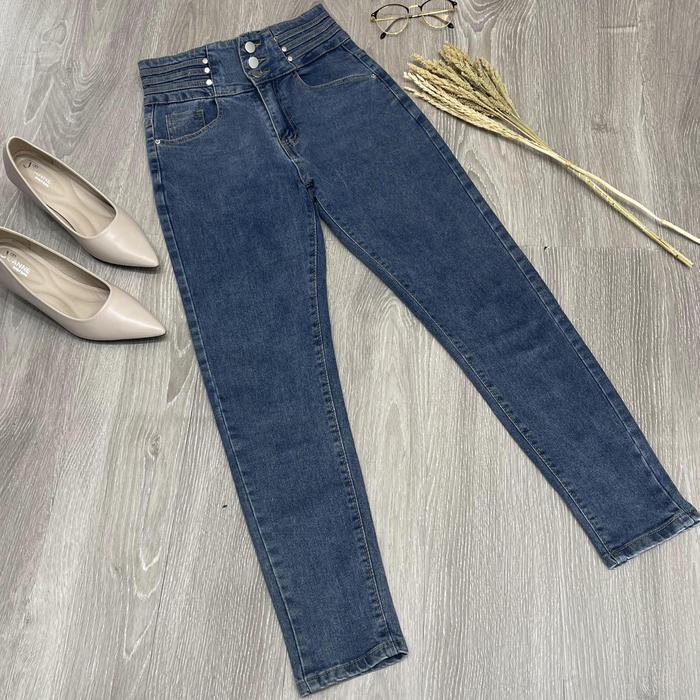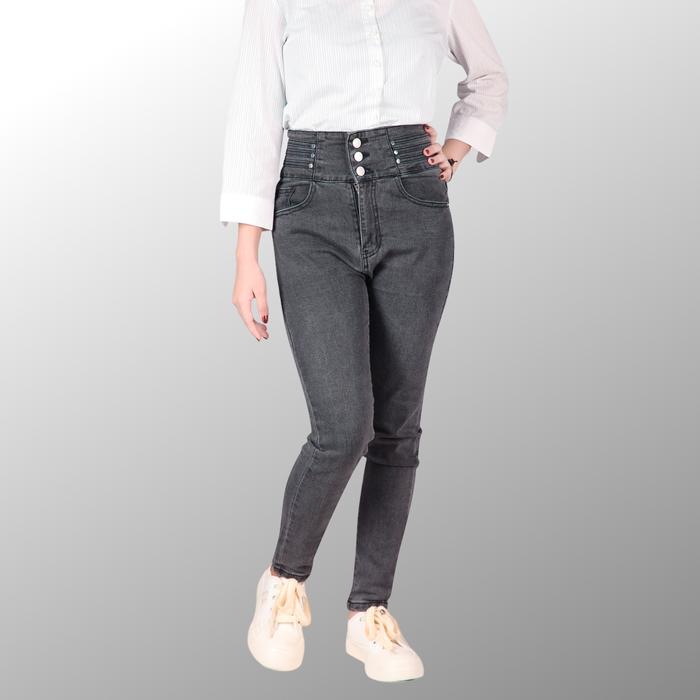 Murah Celana Jeans Wanita Highwaist Skinny Premium Korean Style Panjang Hitam Fit Kaki Nyaman Slim Denim - 4bu L Elegan